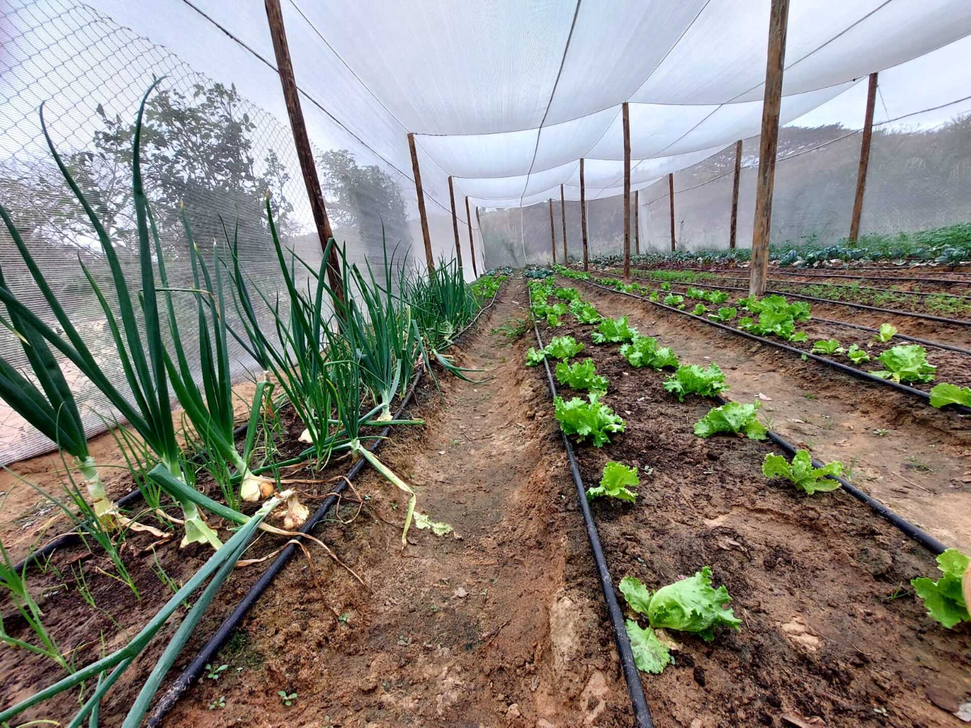 A nossa estufa já produz quase todos estes alimentos, assim como, cebola, couve e repolho, mas não consegue produzir regularmente na época de calor, com o sistema de rega gota a gota.